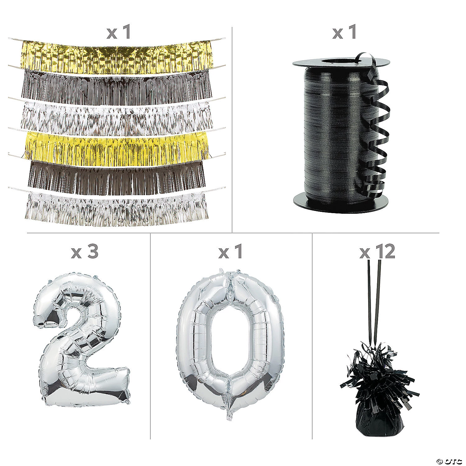 Impress guests at your New Year’s Eve party or 2022 graduation celebration with this fun decorating kit! This kit makes it easy to create an impressive, shiny backdrop for any 2022 celebration. Great as a photo booth backdrop, this kit features “2022” spelled out in silver and gold mylar balloons and a dazzling foil fringe garland backdrop. (23 pcs. per unit) Assortment may vary. Simple assembly required. © OTCIncludes:• 3 Silver “2” Shaped Mylar Number Balloons (34″)• 1 Silver “0” Shaped Number Mylar Balloon (34″)• 12 Foil Black Metallic Balloon Weights (5 1/2″)• 1 Polypropylene Black Curling Ribbon (3/16″ x 500 yds.)• 1 Foil Black, Gold & SIlver Fringe Garland Backdrop (6 pcs. per set. 61″ x 10″)