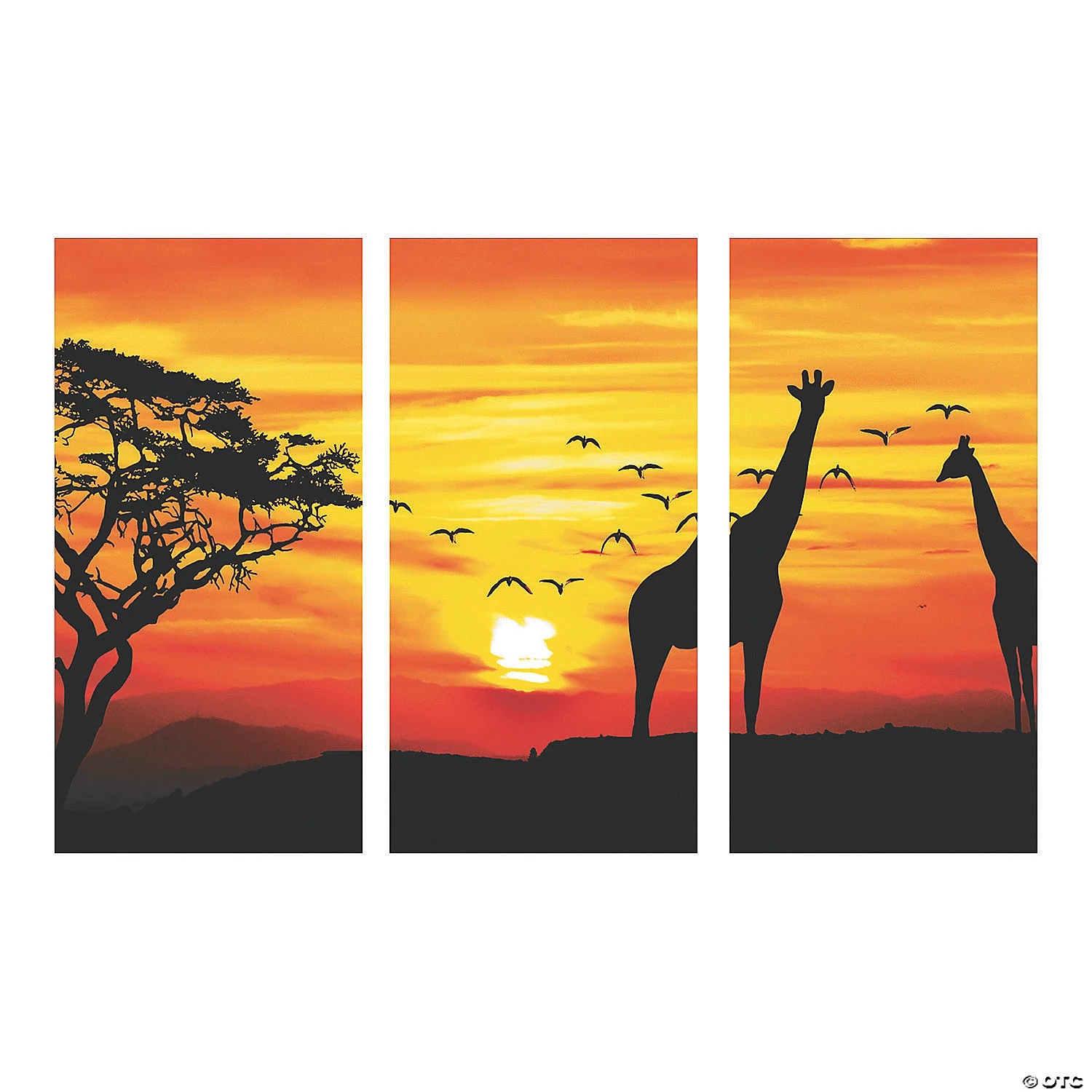 This gorgeous safari backdrop is a perfect party decoration for a safari birthday party, going away party, or for simply adding some mystery and allure to your home décor. The breathtaking colors and dark giraffe outlines make this plastic banner ideal for adding depth and drama to your living room or bedroom. Add our African Safari Backdrop Banner to your party supplies, and when the party is over, incorporate it into your decorating scheme – it’s stunning, versatile and a unique way to dress up your walls. Plastic. (3 pcs. per set) Assembled, 9 ft. x 6 ft. © OTC