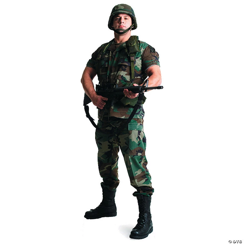 When you want your decorations to stand out, choose a Stand-Up! A-ten-hut! Perfect for a party, this Army Soldier Stand-Up is the quick and easy way to make an impact at your event. Decorate for a military theme birthday, Halloween party, special event or everyday fun with this full-color quality stand-up. Cardboard. 26″ x 73″. Stand-ups are one-sided with a brown cardboard back. Special Shipping Information: This item ships separately from other items in your order. This item cannot ship to a P.O. Box. This item may be subject to additional processing days.ITEM IS NOT ELIGIBLE FOR EXPEDITED SHIPPING