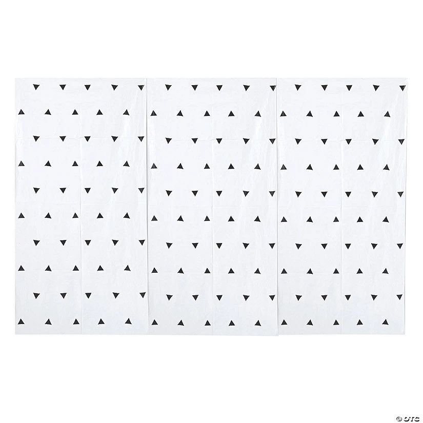 Complete your geometric party theme with this Black & White Triangle Backdrop. Simple and modern, this party backdrop add effortless decoration to your event space. Hang it as a photo booth backdrop to give your guests a cute place to take pictures, or use to as a wall decoration behind your gifts or food table. Plastic. (3 pcs. per set) Assembled, 9 ft. x 6 ft. Simple assembly required. © OTC