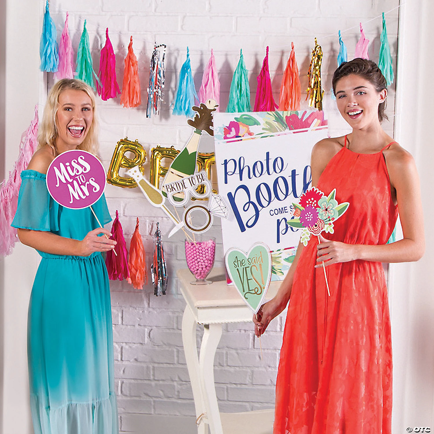 Create fun photo ops at your bridal shower, engagement party or bachelorette party with these fun photo stick props! Set up a photobooth with a backdrop banner (check out our selection!) and then have your friends pose! Paper props on wooden sticks. 3 3/4″ – 10 1/2″ x 3 1/4″ – 13″ on 12″ sticks. © OTC