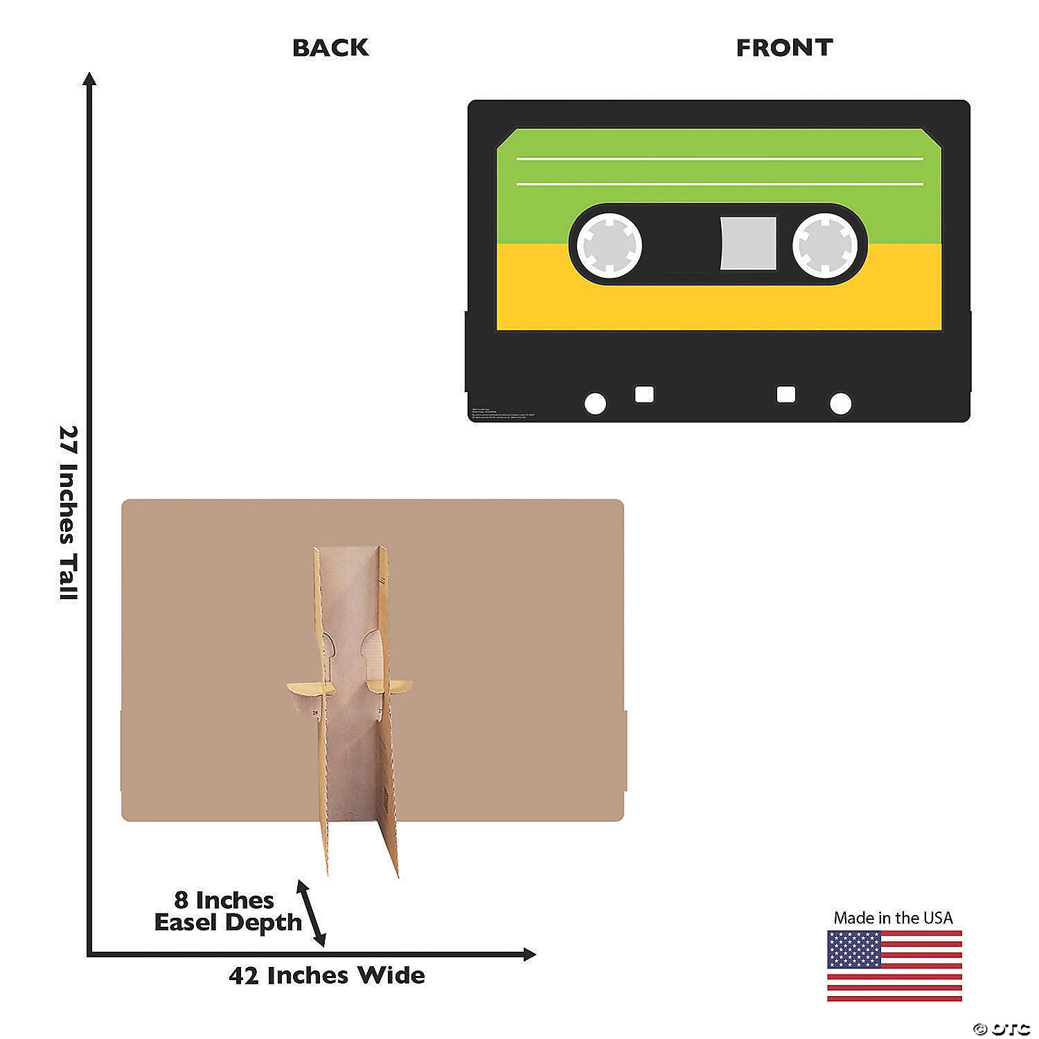 Gearing up for a 90s themed party or event? This huge Cassette Cutout Decoration will look lovely as a part of the rest of your event decorations. Featuring a bright yellow and green accent, it’ll make the vibrant colors that dominated the 90s. Finish up your 90s party supply shopping right here on the site for a complete theme. Cardboard. 42″ x 27″ Stand-ups are one-sided with a brown cardboard back. Simple assembly required.Special Shipping Information: This item ships separately from other items in your order. This item cannot ship to a P.O. Box. This item may be subject to additional processing days. ITEM IS NOT ELIGIBLE FOR EXPEDITED SHIPPING