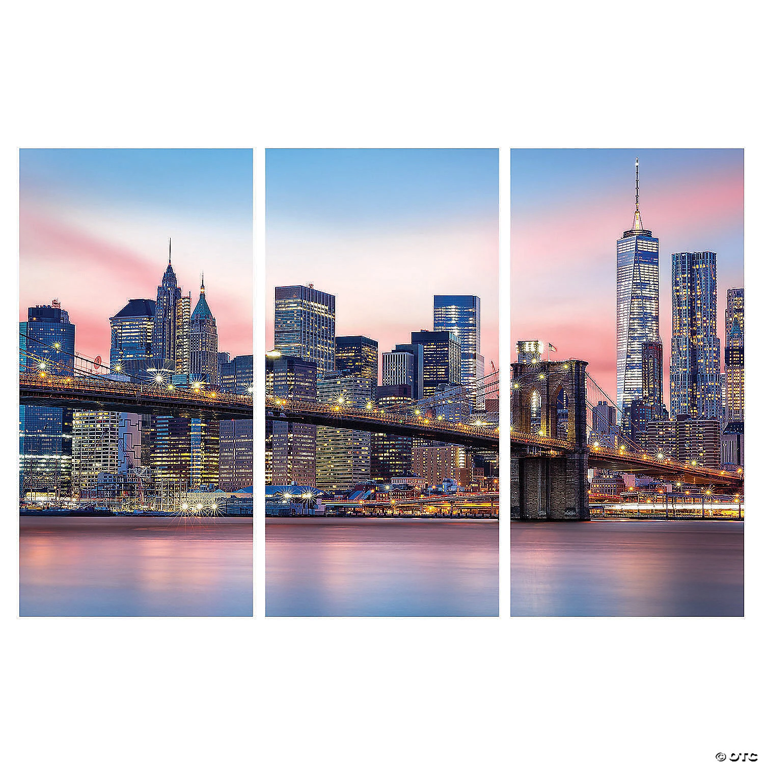Give your party the energy of a city that never sleeps with this great city skyline backdrop banner. Skyscrapers tower as life goes on in the streets, cars and the pedestrians stream across a grand old bridge and the beautiful dusk sky is reflected on the water. This banner is a great addition to bon voyage party supplies and birthday party supplies. Use it to show the city a superhero protects at a superhero party! Plastic. (3 pcs. per set) Assembled, 9 ft. x 6 ft. Simple assembly required. © OTC