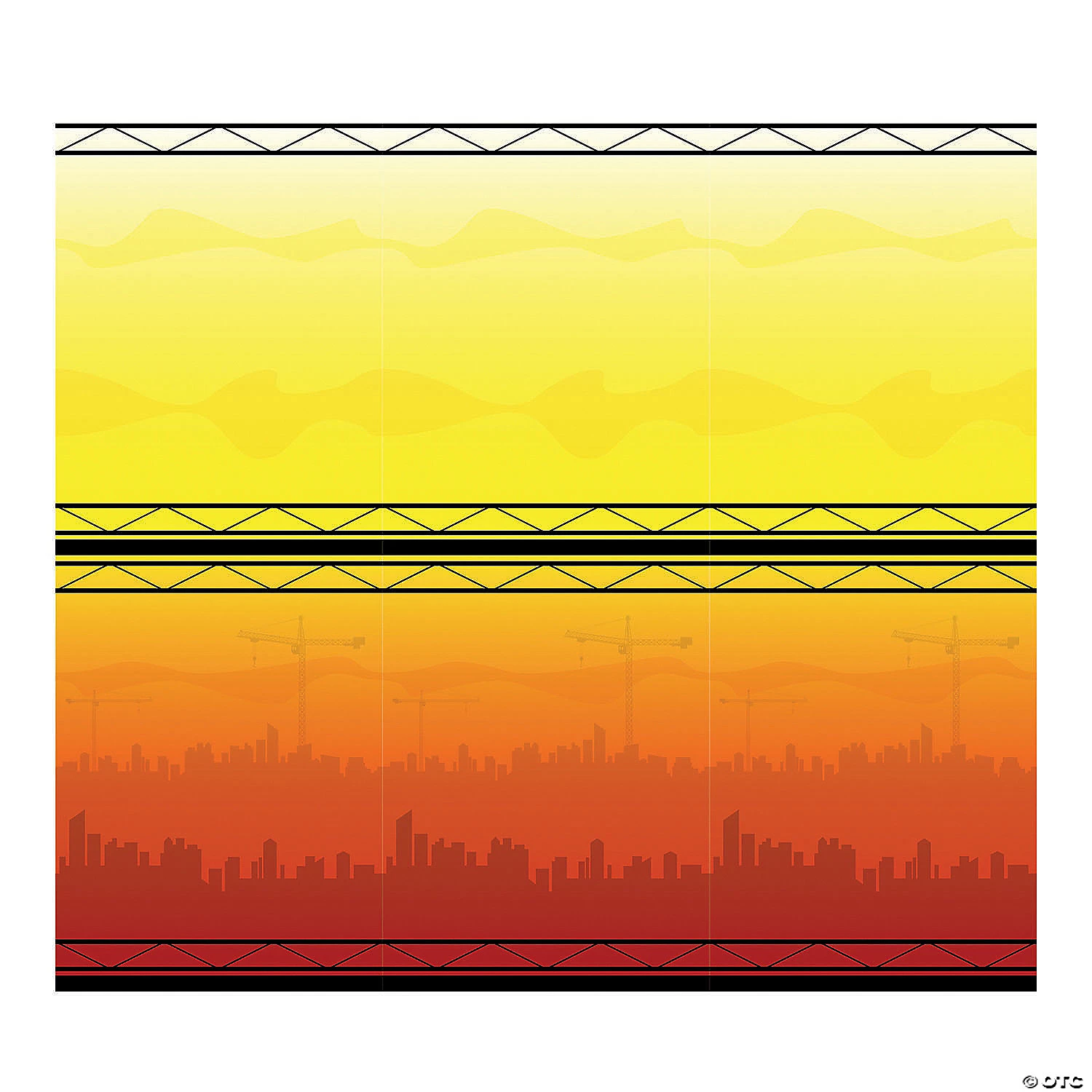 Transform your VBS space into a busy construction site with this background for the wall. Featuring a view from high scaffolding looking out into the horizon of multiple construction sites, this background will elevate your Construction VBS decorations and help promote the construction theme throughout your space. Plastic. (2 pcs. per set) Assembled, 30 ft. x 8 ft. Simple assembly required. © OTC