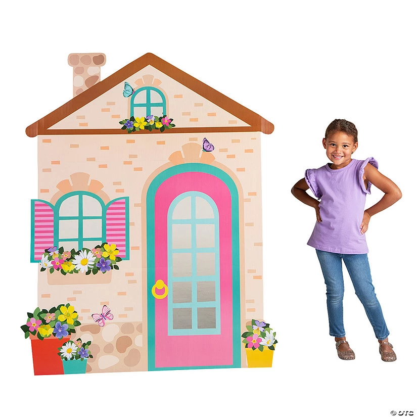 Add some whimsical charm to your event with this adorable cottage stand-up! This cottage-shaped stand-up looks like a child-sized cottage one might encounter while strolling through the woods or visiting the countryside in a fairy tale. Great for taking photos or to add some variety to party decorations, this cottage is a welcoming site for guests of all ages. Cardboard. 43 3/4″ x 55 3/4″ Simple assembly required. Stand-ups are one-sided with brown cardboard backs. © OTCCottage Stand Up Photo Prop Instructions