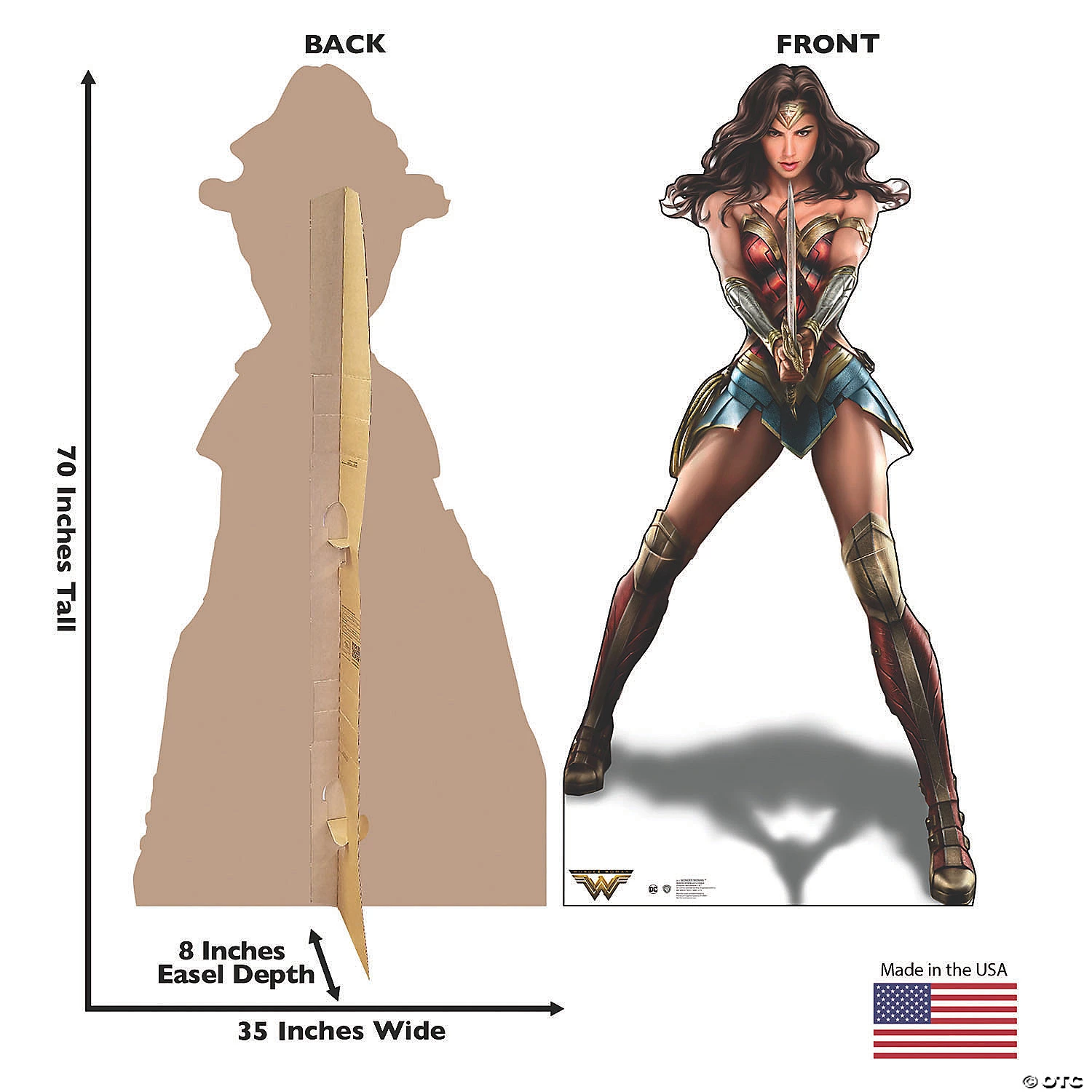 Celebrate strong women and a founding member of the Justice League with this life-sized Wonder Woman photo prop! Diana wields the Sword of Athena and looks ready to take on all the bad guys in this great addition to your superhero party supplies and decorations. Cardboard. 35″ x 70″ Stand-ups are one-sided with a brown cardboard back. Simple assembly required. © Advanced Graphics