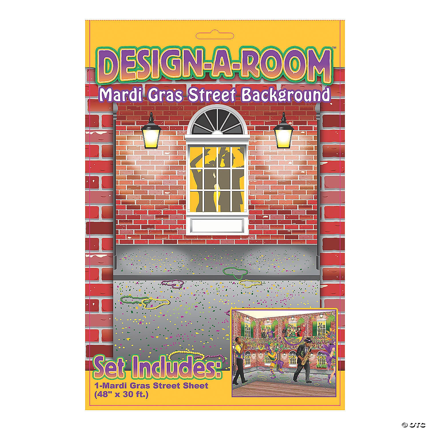 Decorate your party room in minutes with this Mardi Gras Design-A-Room Street Background, which looks like a New Orleans street. Simply hang this Mardi Gras decoration on your wall for a jazzy DIY photo booth backdrop! Vinyl. 30 ft. x 4 ft. Includes street background only. Other accessories sold separately. To purchase full set, see 70/65430. Use your own wall adhesive for hanging. © OTC