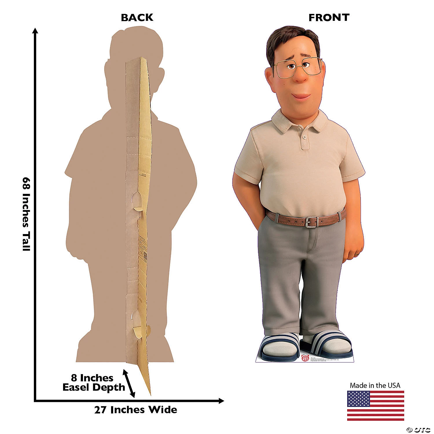 This doting husband and father brings a soft-spoken yet strong presence to your Turning Red birthday party or other event. His gentle yet encouraging demeanor will inspire party guests to dance to the beat of their own drum and be true to themselves! Quiet and unassuming, this life-size party decoration makes a great background for party selfies, whether he’s displayed alone or next to his wife and daughter (sold separately on this site). Cardboard. 27″ x 68″ Stand-ups are one-sided with a brown cardboard back. Simple assembly required. © Advanced Graphics Special Shipping Information: This item ships separately from other items in your order. This item cannot ship to a P.O. Box. This item may be subject to additional processing days.ITEM IS NOT ELIGIBLE FOR EXPEDITED SHIPPING