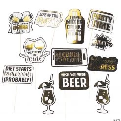 Strike a party pose with these hilarious photo props! Featuring fun expressions and shapes they are a popular addition to party supplies for any special occasion. These photo stick props feature sassy sayings like “I have mixed drinks about these feelings”, “Alcohol you later” and “Great minds drink alike”. Set up a DIY photo booth using these Drinking Party Photo Props and funny pictures are sure to follow! Cardstock. 5 1/2″ – 10″ x 5 3/4″ – 13 3/4″ props on 12″ wooden sticks. © OTC