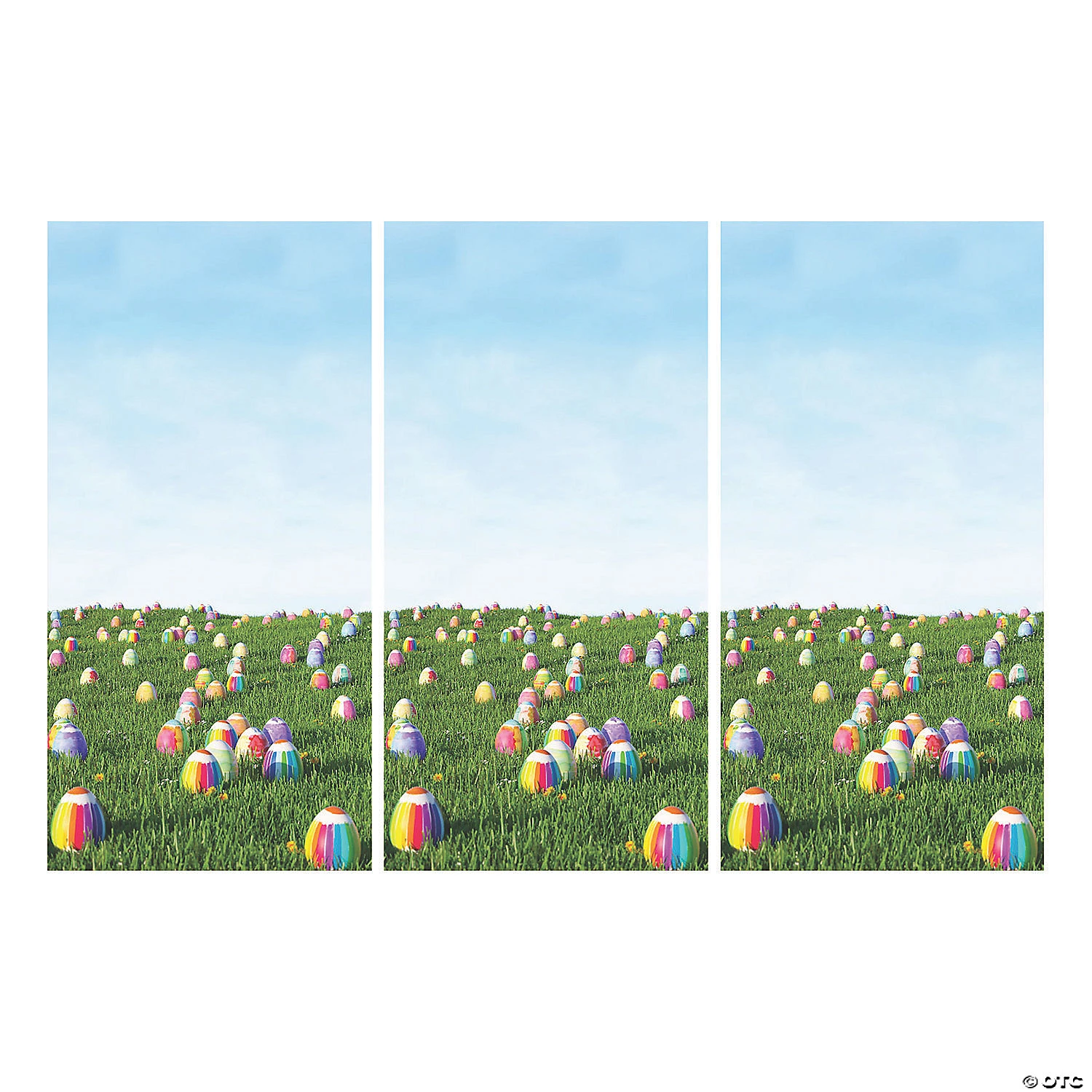 No need to hunt around for Easter decorations! We have everything you need for an Easter egg hunt or party right here on our site! This Easter backdrop depicts painted eggs arranged in plush grass and a bright blue sky. For an event, hang the banner behind the Easter bunny’s chair at a meet-and-greet or use it as a photo booth backdrop. Plastic. (3 pcs. per set) Assembled, 9 ft. x 6 ft. Simple assembly required. © OTC