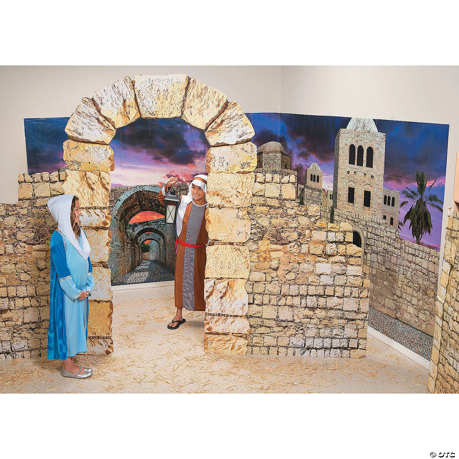 Make a grand entrance at your Christmas pageant with this archway. It’s an ideal addition to Nativity scene supplies and is a perfect finishing touch to a touching and time-honored tradition. Sturdy and durable, it will last you holiday season after season. Cardboard. 10 ft. 5-1/2″ x 7 ft. 3″ Assembly required. © OTC Entrance to Bethlehem Archway Template/a