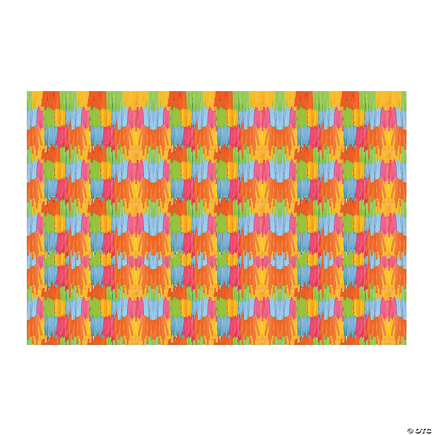 Spice up your party with fun fiesta decorations like this fringe print backdrop! Designed to look like the paper fringe of a pinata, the plastic backdrop features a bold pattern of blue, orange, yellow, green and pink! Create a DIY photo booth for your fiesta with this wall decoration and fiesta props! Plastic. (3 pcs. per set) Assembled, 9 ft. x 6 ft. Simple assembly required. © OTC