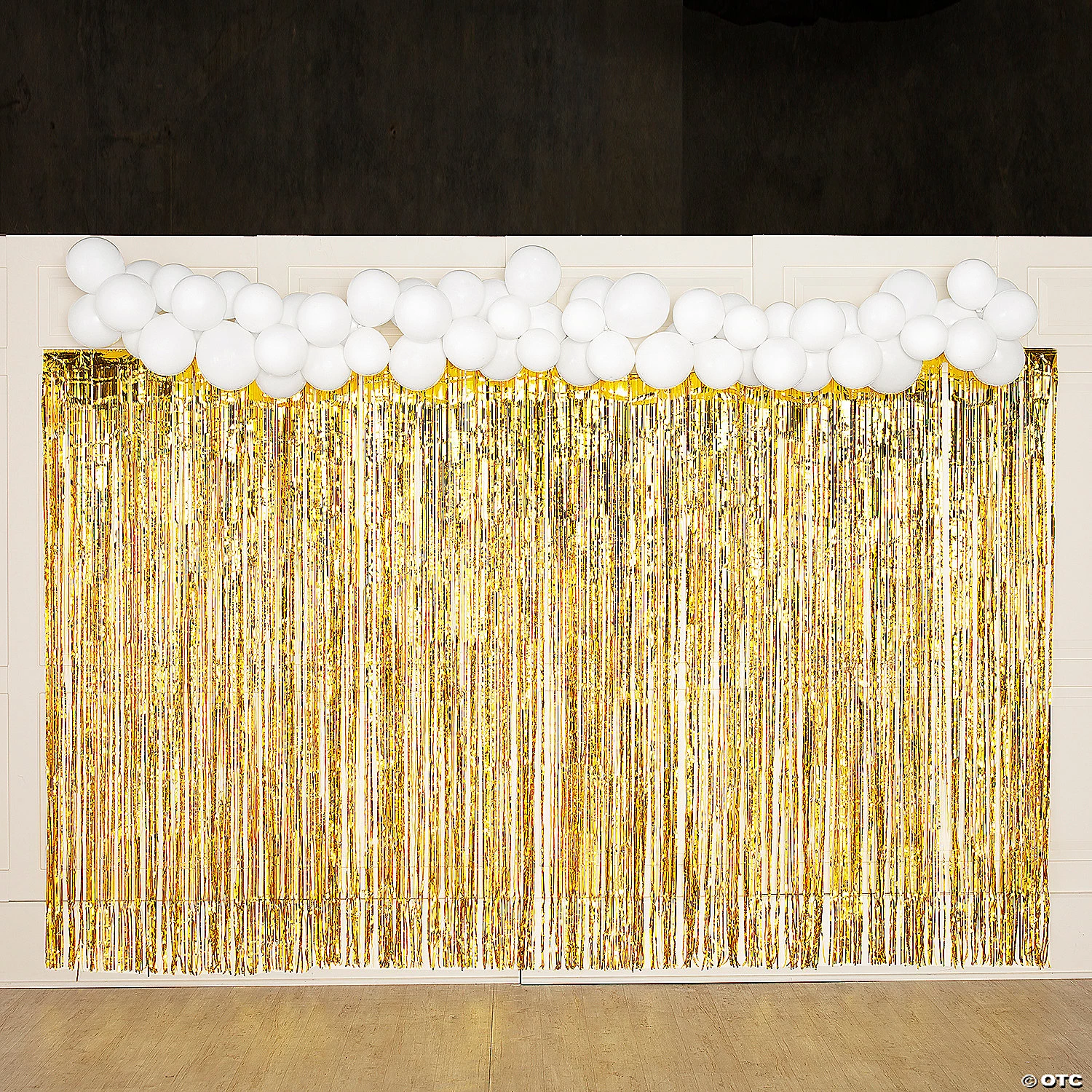 • 1 Plastic Large Gold Metallic Fringe Backdrop Curtain (12 ft. x 8 ft.)