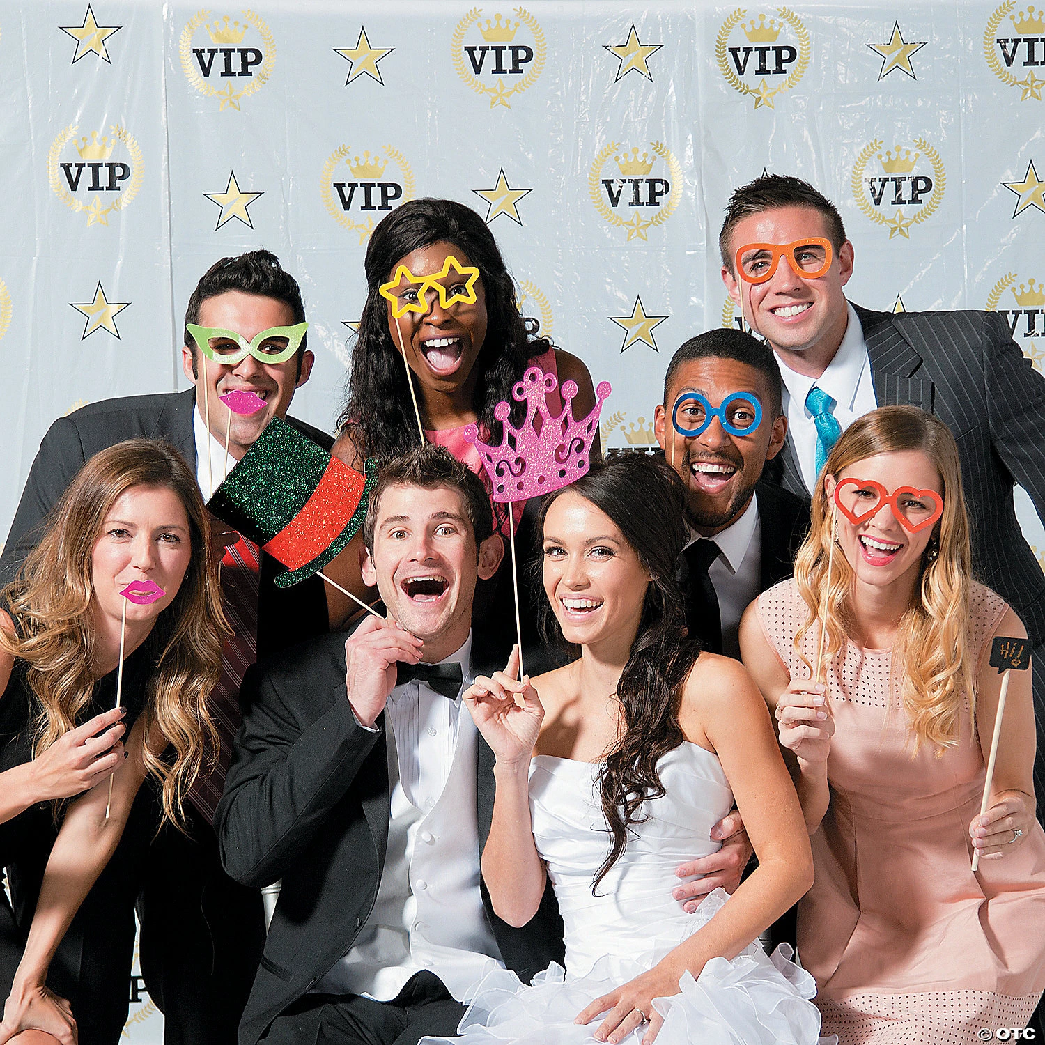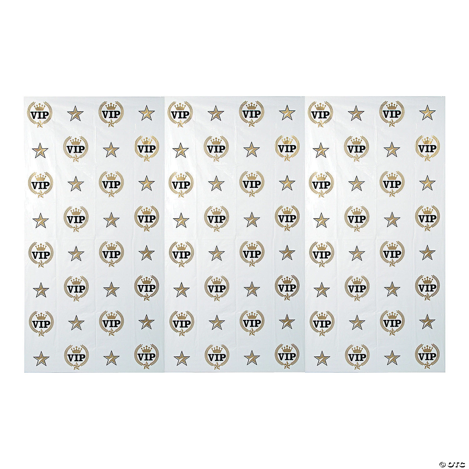 Make movie night party guests feel like red carpet royalty with this Hollywood VIP Backdrop Banner. Set this photo backdrop up at the entrance to your cinema celebration and let guests strike a pose in VIP style. Pair it with a red carpet and stanchion for a star-studded touch. Plastic. (3 pcs. per set) Assembled, 9 ft. x 6 ft. Simple assembly required. © OTC