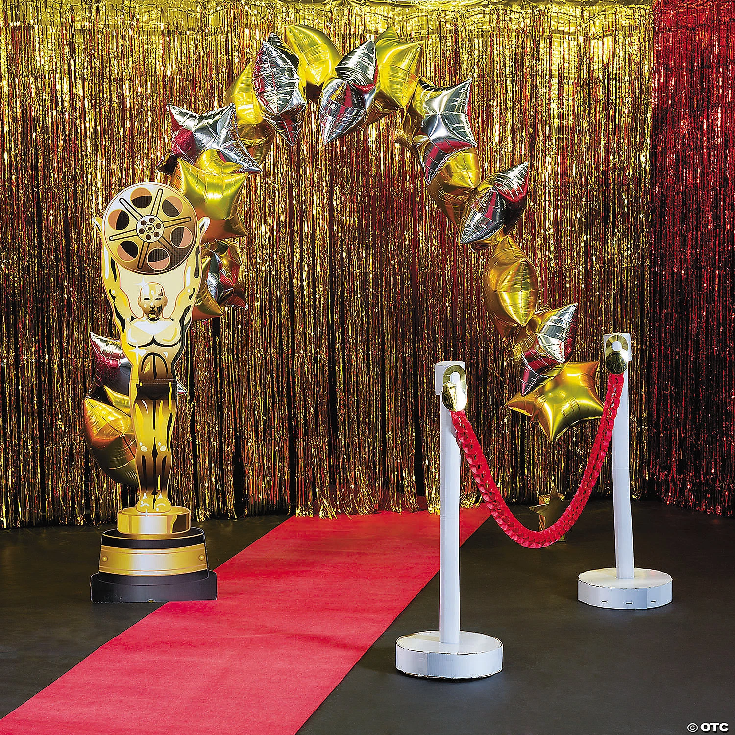Hang this Large Fringe Curtain Background for an easy way to decorate doorways, trellises or walls. Match this curtain background to your school spirit colors for an eye-catching addition to homecoming dances, prom, pep rallies and more. This shimmering door décor will match any theme or decorations and makes a fun photo backdrop, too! Use it at company parties, fundraisers or anywhere you want to add a splash of elegant shimmer in a snap. Choose the perfect shade to match your celebration! Foil. 12 ft. x 8 ft. © OTC