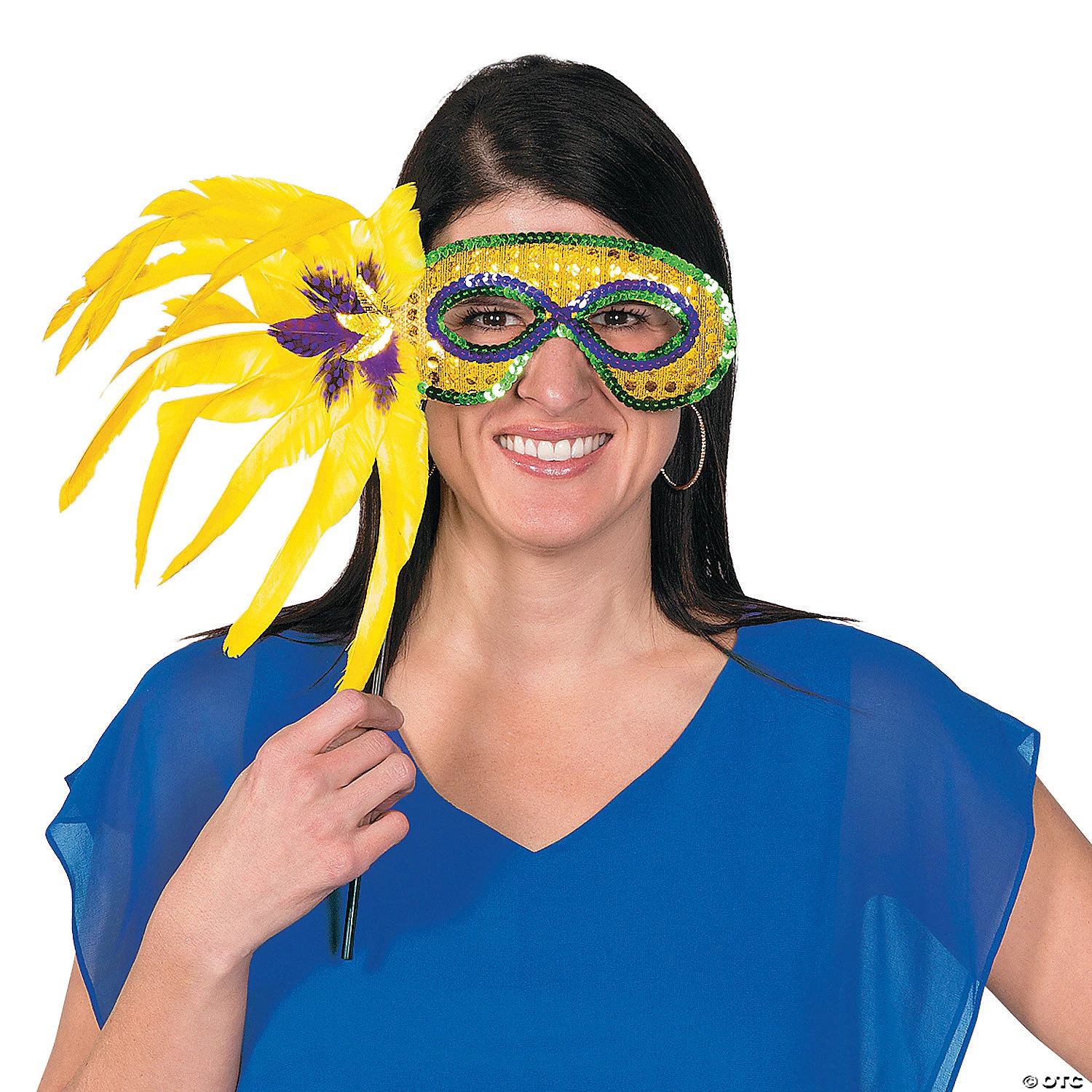 No Mardi Gras is complete without some elegant masquerade masks. Try on one of these feathered disguises and attend the masquerade ball in style. Who will you meet at the party? You’ll have to attend to find out! These pretty masquerade masks make great costume accessories and come in a rainbow of festive colors. 11″ masks on 10″ plastic sticks.