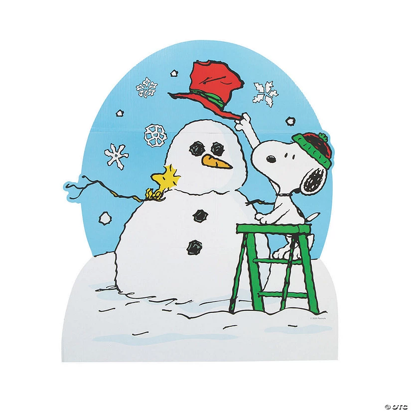 This fun winter stand-up decoration features some of the Peanuts® gang putting together a classic snowman complete with coal eyes and buttons and a carrot nose. Perfect as a holiday party decoration, this stand-up is a great choice for a photo booth or selfie station decoration. Guests will be impressed with this fun stand-up you’ll only find here! Cardboard. 42 1/4″ x 50″ Simple assembly required. Stand-ups are one-sided with brown cardboard backs. © OTC/ © 2016 Peanuts Worldwide LLC Peanuts Winter Snowman Stand-Up Instructions