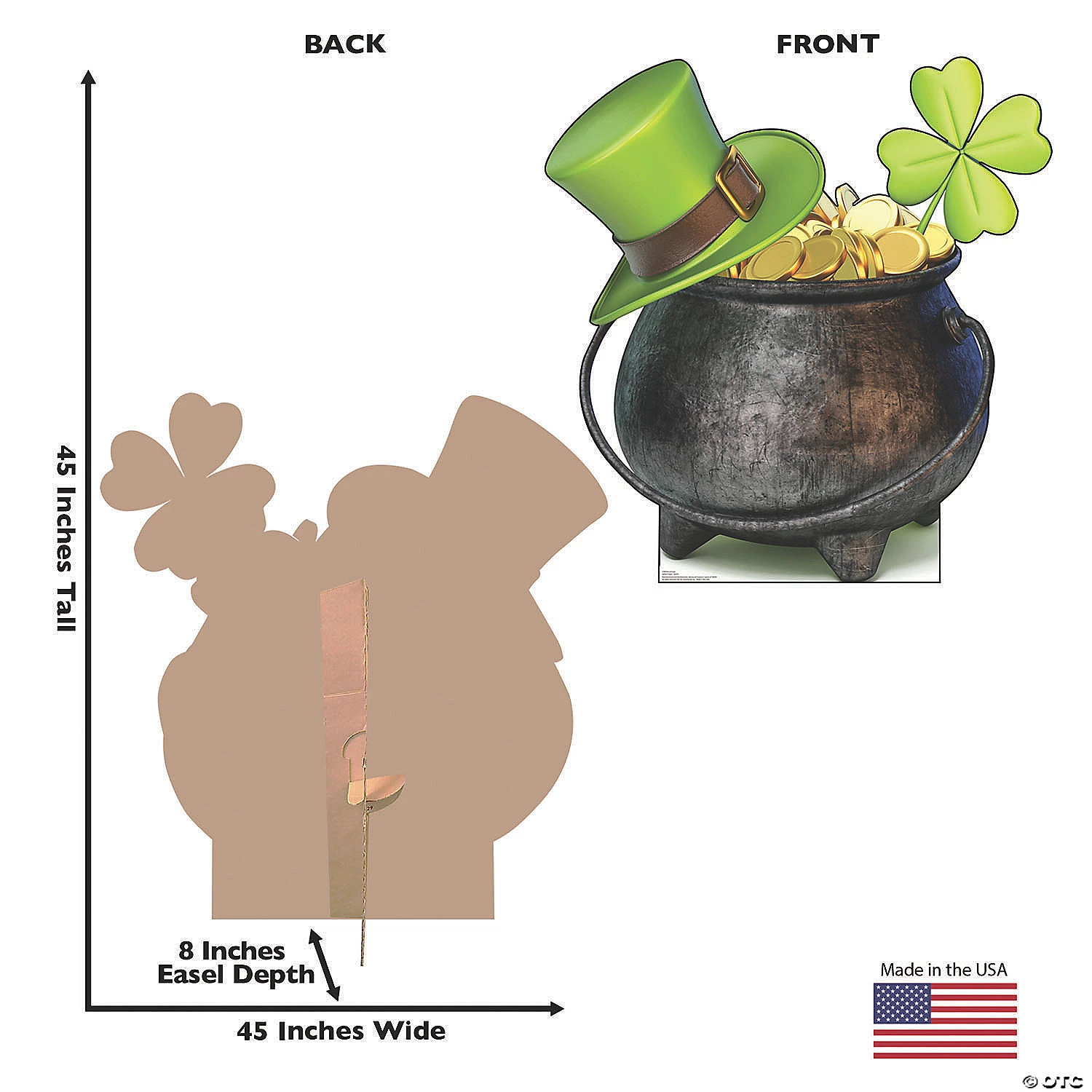 You found it! Here’s a pot of gold that you don’t have to chase a rainbow to find. A fantastic St. Patrick’s Day party decoration, this stand-up will impress guests and give your party a lucky feel. Great for photos but also impressive as a standalone decoration, this pot of gold is just about as lucky as you can get! Cardboard. 45″ x 45″ Stand-ups are one-sided with a brown cardboard back. Simple assembly required.Special Shipping Information: This item ships separately from other items in your order. This item cannot ship to a P.O. Box. This item may be subject to additional processing days. ITEM IS NOT ELIGIBLE FOR EXPEDITED SHIPPING