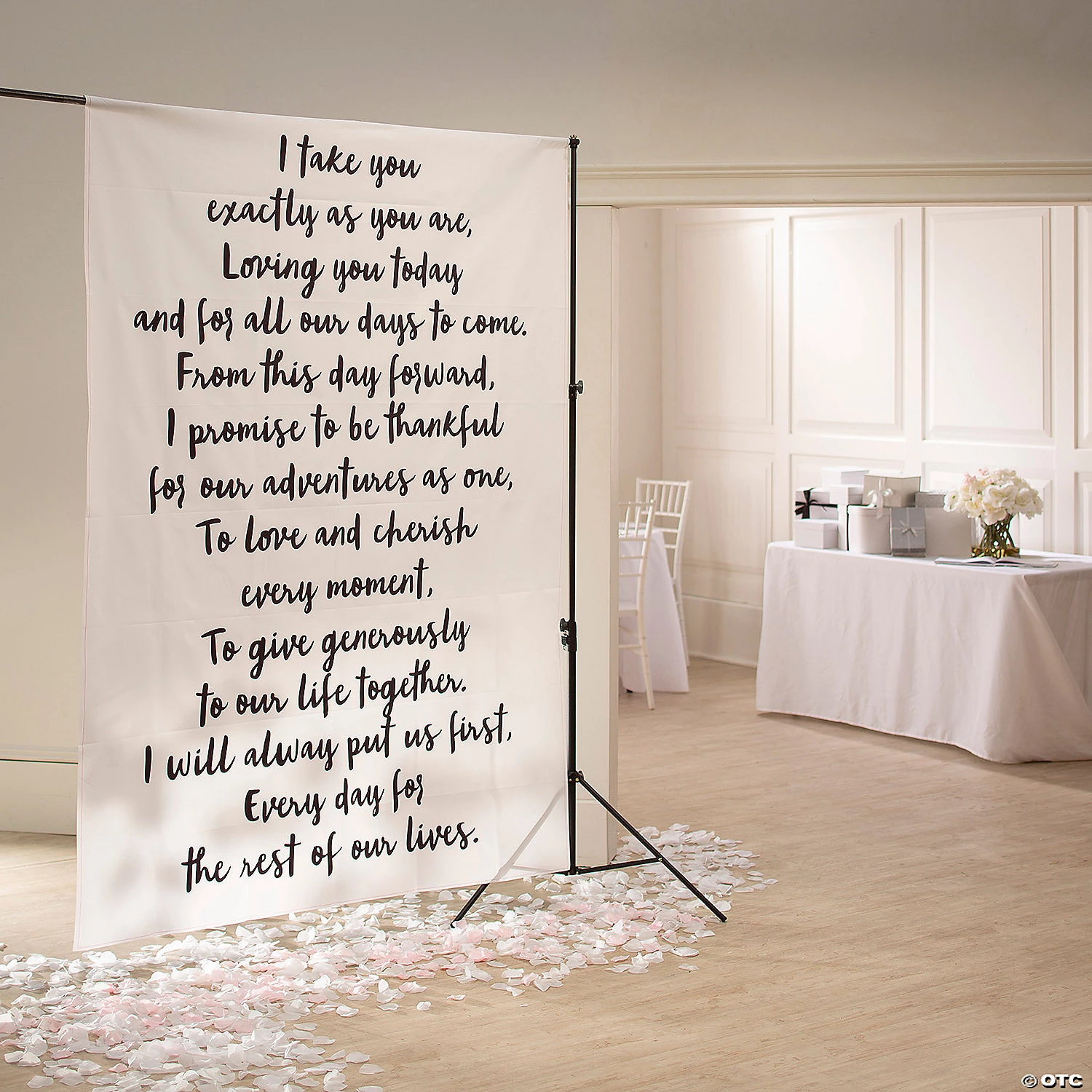 Showcase your love with this gorgeous backdrop banner! Display it in your reception’s entranceway to welcome guests, hang it behind your head table or use it to create an elegant photo booth, complete with wedding-themed photo booth props available on this site. We recommend using this banner with one of our Backdrop Banner Frames, sold separately on this site. Polyester. 59″ x 82 1/4″ © OTC