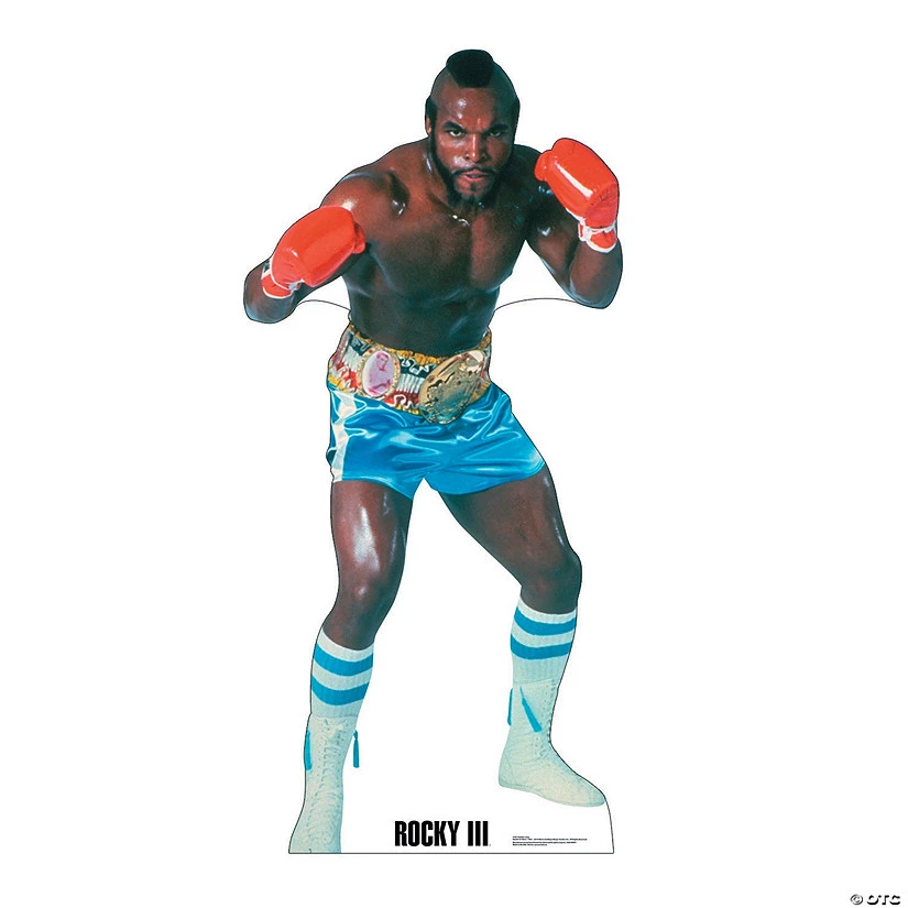 Wearing his championship belt, Clubber Lang from Rocky III is a formidable opponent and an awesome photo prop. Rocky party supplies make a great addition to man caves for movie night and binge watching this classic series of boxing films. Who doesn’t want their picture taken with Clubber Lang, aka Mr. T? Cardboard. 33″ x 5 ft. 10″ Stand-ups are one-sided with a brown cardboard back. Simple assembly required. Special Shipping Information: This item ships separately from other items in your order. This item cannot ship to a P.O. Box. This item may be subject to additional processing days.ITEM IS NOT ELIGIBLE FOR EXPEDITED SHIPPING