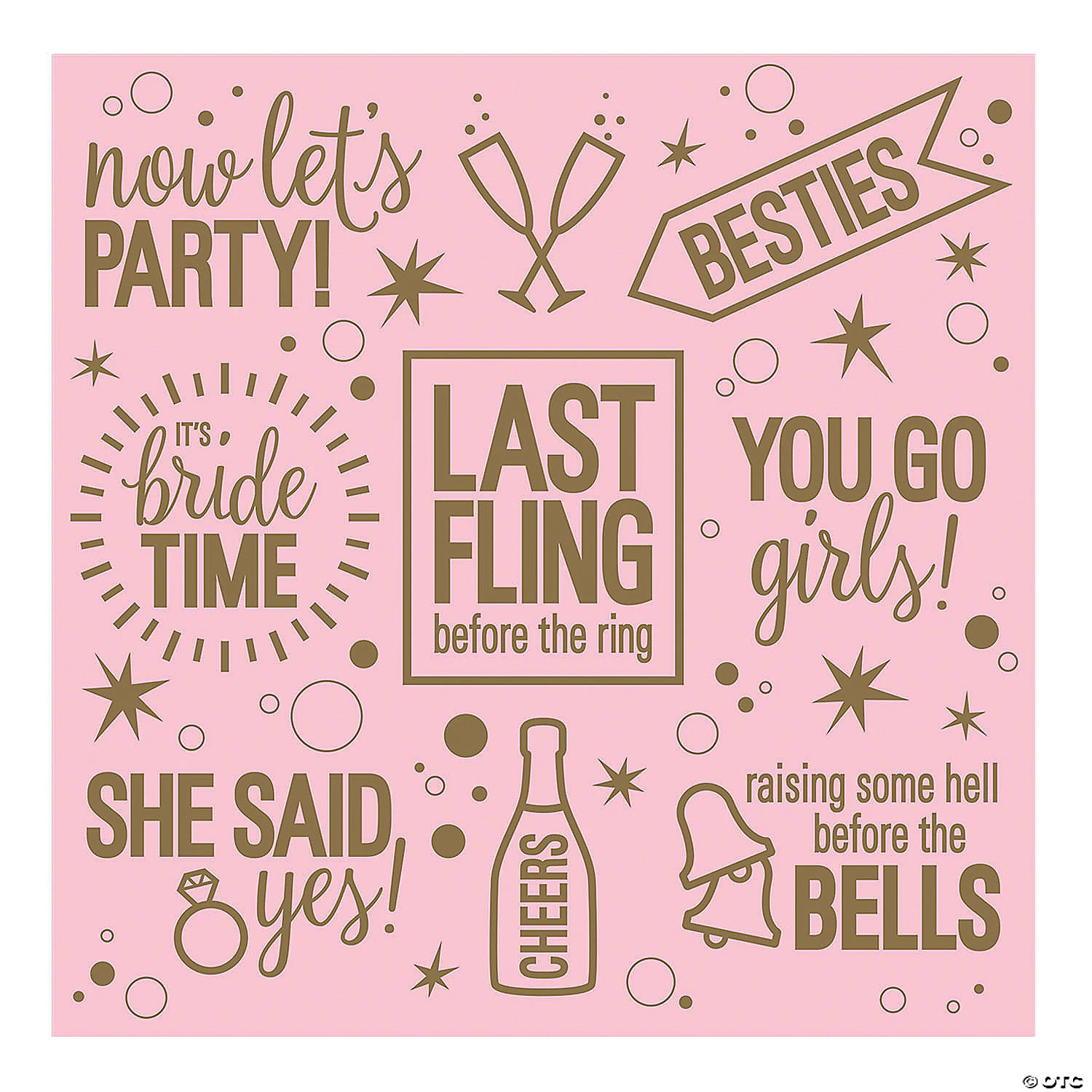 Just what you need to add some style to your last fling before the ring! A fabulous and festive addition to bachelorette party décor, the backdrop banner features a modern pink and gold design with sayings like “She Said Yes!” and “It’s Bride Time”. Pop some bubbly, snap some selfies and prepare for the night of your life! Plastic. 72″ x 72″ © OTC