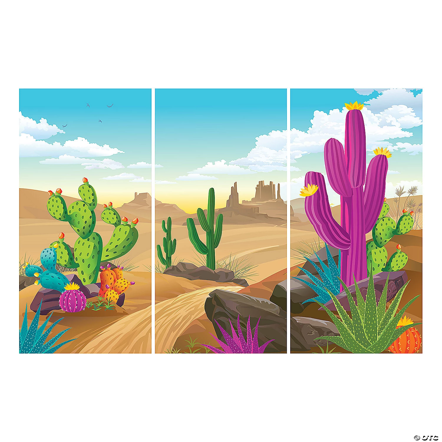 Set the scene for a Southwest VBS experience with this impressive backdrop. Featuring a colorful image of a Southwestern desert sunset, this wall decoration can transform any spot into a Southwest VBS space that will get kids excited to learn about God! This backdrop is also great as a photo booth background. Plastic. (2 pcs. per set) Assembled, 9 ft. x 6 ft. Simple assembly required. © OTC
