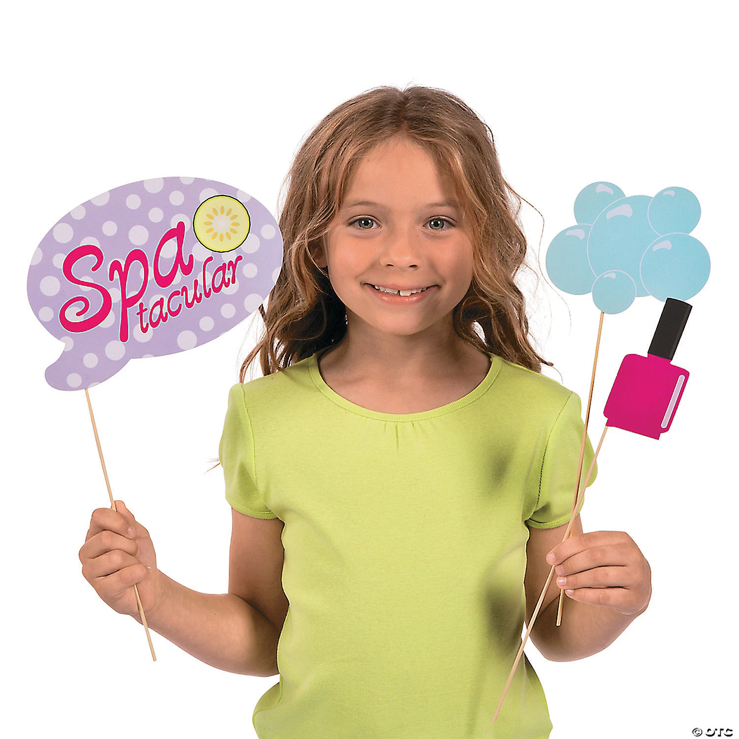 End your spa party with pampered pictures! Put together a DIY photo booth for your pampered party starting with these Spa Party Photo Stick Props. Featuring cucumbers, towels around the head and more, these paper props are a fun-filled way to make every photo memorable. 1 1/4″ – 8 1/4″ x 1 1/2″ – 7″ paper props on a 12″ wood stick. © OTC
