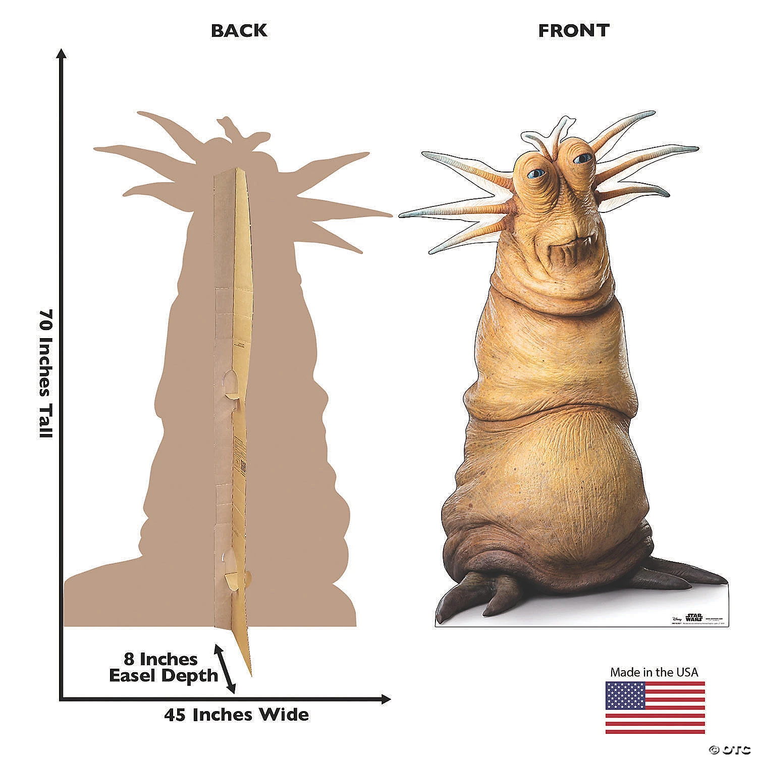 He’s not pretty, but he’s sure to catch the attention of your guests! Designed to look like Klaud, a slug-like alien with yellow skin, this stand-up is a gross-out great addition to Star Wars party décor. He’s a friend of the Resistance, and any friend of the Resistance is a friend of yours. So be sure to set him up next to your buffet table or entryway! Cardboard. 45″ x 70″ Stand-ups are one-sided with a brown cardboard back. Simple assembly required. © & ™ Lucasfilm Ltd. All Rights Reserved.