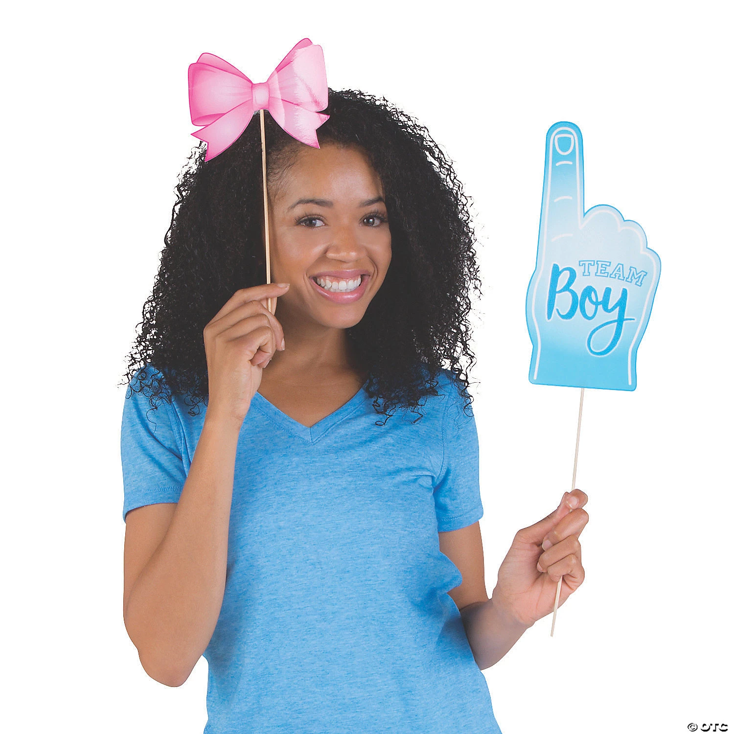 Yay Team Boy! Rah-rah Team Girl! No matter which side you’re on, everyone wins with photo props as fun as this. Perfect for baby gender-reveal party supplies, these photo stick props come in fun shapes like binkies, bows, sunglasses and more. Whether you add ’em to a DIY photo booth or just scatter around the party space, guests will have an absolute blast at your bash as they strike a pose. What better way to kill time before the big reveal? Paper. 2 3/4″ – 6″ x 1 3/4″ – 10″ on 12″ wooden sticks. © OTC