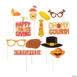 Wake up your uncle from the turkey coma and start a new family tradition with a DIY photo booth! From wearing a goofy pair of drumstick eyeglasses to sipping a pumpkin spice latte, kids and adults alike will have a blast with these props. Have fun and burn a few of those Thanksgiving meal calories, too! Cardstock. 3 1/4″ – 10 1/2″ x 2″ – 8″ props on 8″ wooden sticks. © OTC