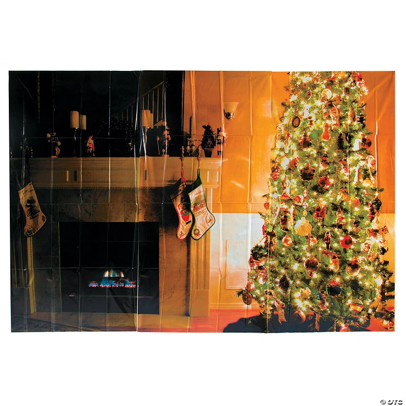 Create a cozy Christmas no matter where you are! The Traditional Christmas Backdrop Banner features a brightly lit Christmas tree next to a lit fireplace. Plastic banner comes in 3 pieces. When assembled, 9 ft. x 6 ft. (3 pcs. per set) Simple assembly required. © OTC