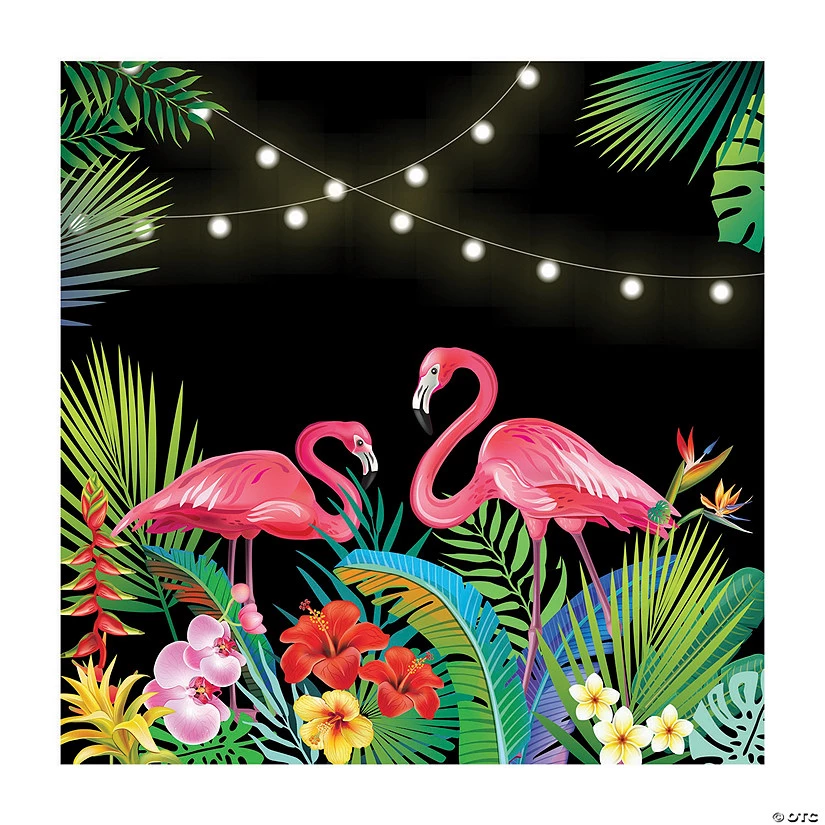 Featuring two flamingos amidst tropical plants and string lights, this plastic backdrop banner makes an excellent addition to event or party decorations. Great for a Tropical Nights themed prom or homecoming, it can also work as a decoration at any luau-themed party at your home! Plastic. 6 ft. x 6 ft. © OTC