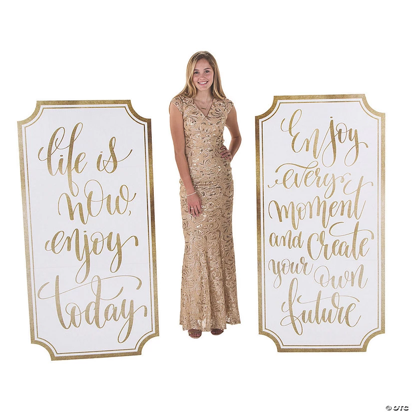 If you’re planning a motivational event or fundraiser, these large signs can welcome them from the entryway or add them to your stage! Each is written with an inspirational message about seizing the day. Cardboard. (2 pcs. per set) 30″ x 61″ Stand-ups are one-sided with a brown cardboard back. Simple assembly required. © OTC